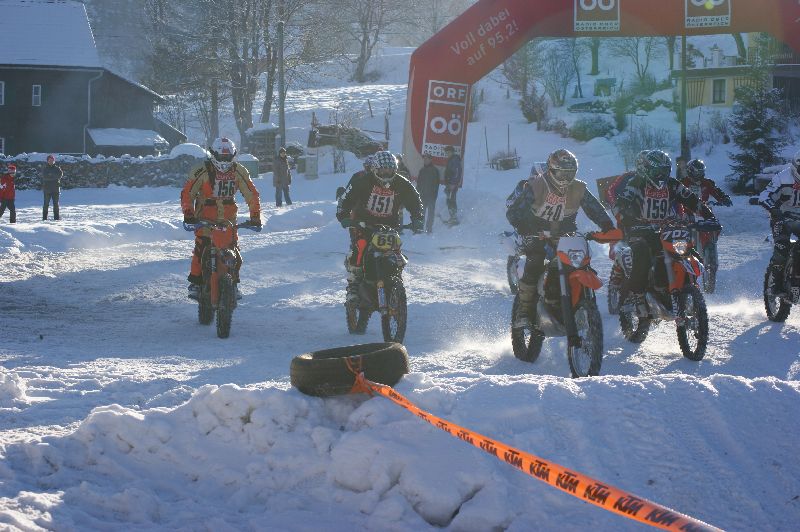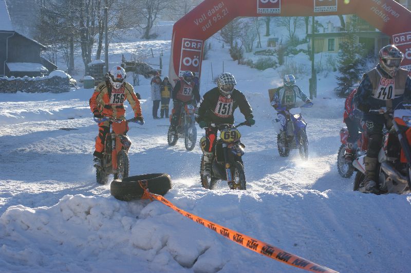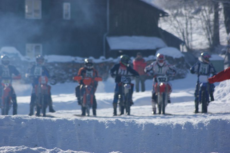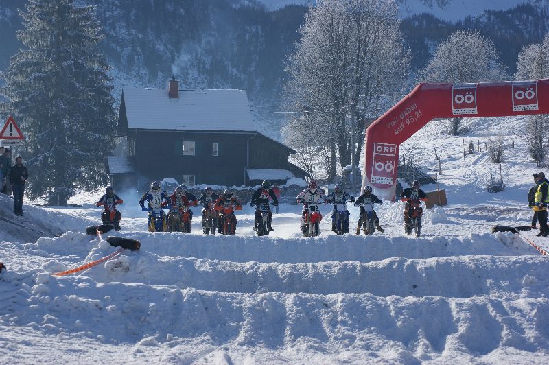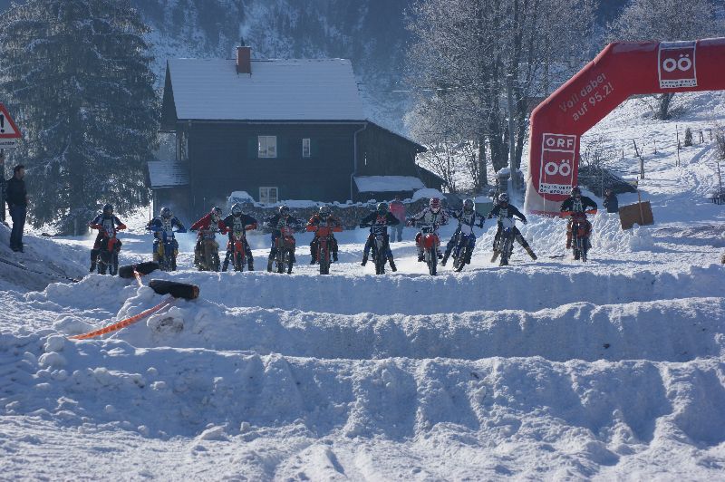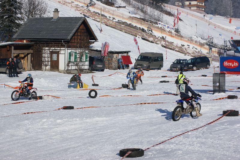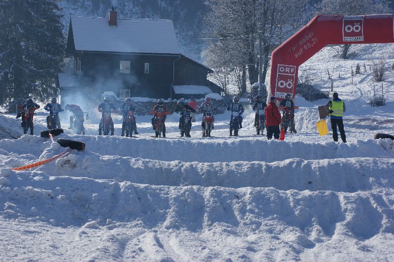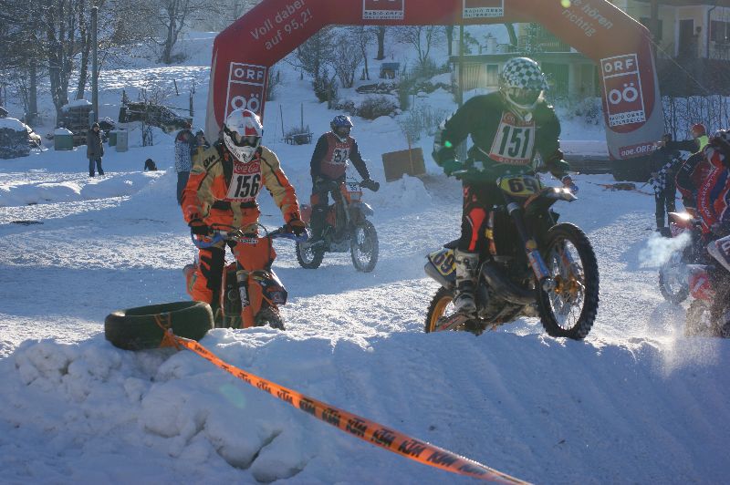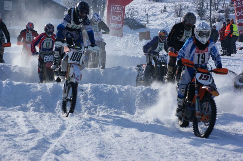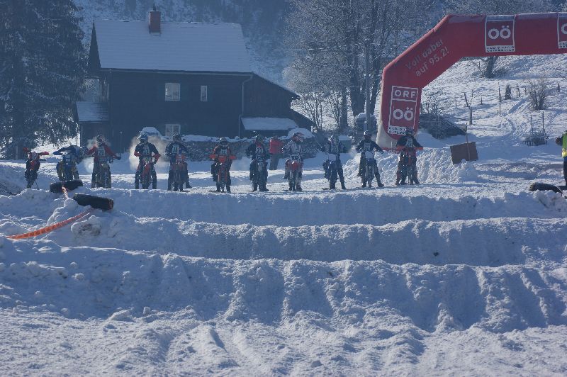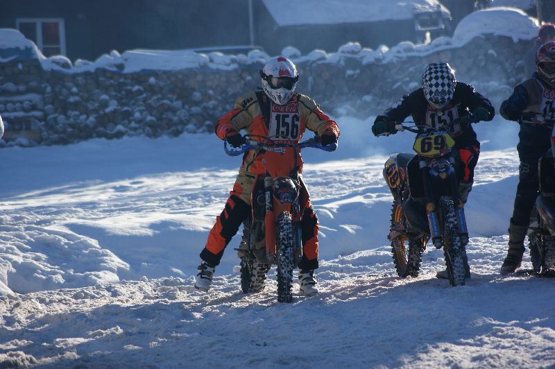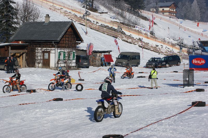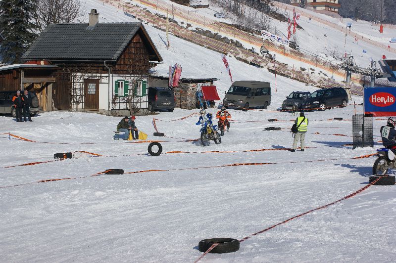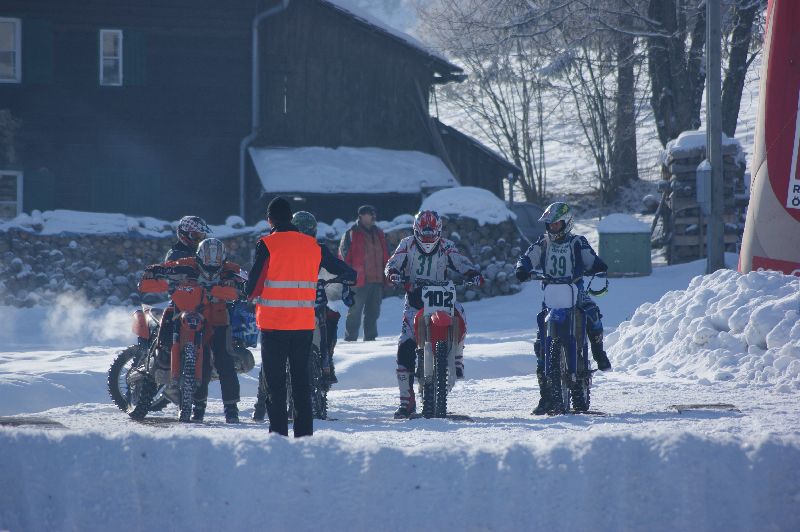 Eisig kalt war das Wintermotocross des Offroadteam Rabenkogel an diesem Wochenende. Trotz geringer Schneelage brachten die Veranstalter eine sehr schöne Strecke mit einem kleinen, aber sehr gefährlichen, Waschbrett und zwei großen Sprüngen zusammen. Die Läufe wurden nach dem K.O.-System gewertet, wobei immer 10 Fahrer an den Start gingen und die Besten 5 aufstiegen. Die letzten 5 hatten noch in einem Hoffnungslauf die Cance sich zu beweisen und doch noch eine Runde weiter zu kommen. Um auch mal etwas anderes im Winter zu machen als Skijöring zu fahren, ließen Peter Schmölzl, Korbi Meindl, Wasti Hirnböck und Anna Schmölzl ihre Skifahrer zu Hause und waren gespannt, wie sie sich alleine auf Schnee schlagen würden.