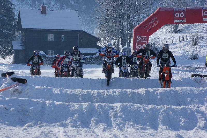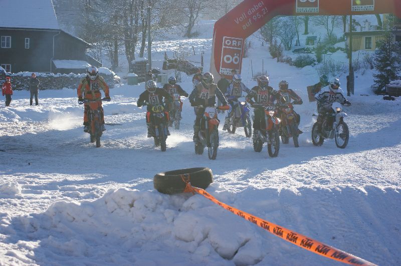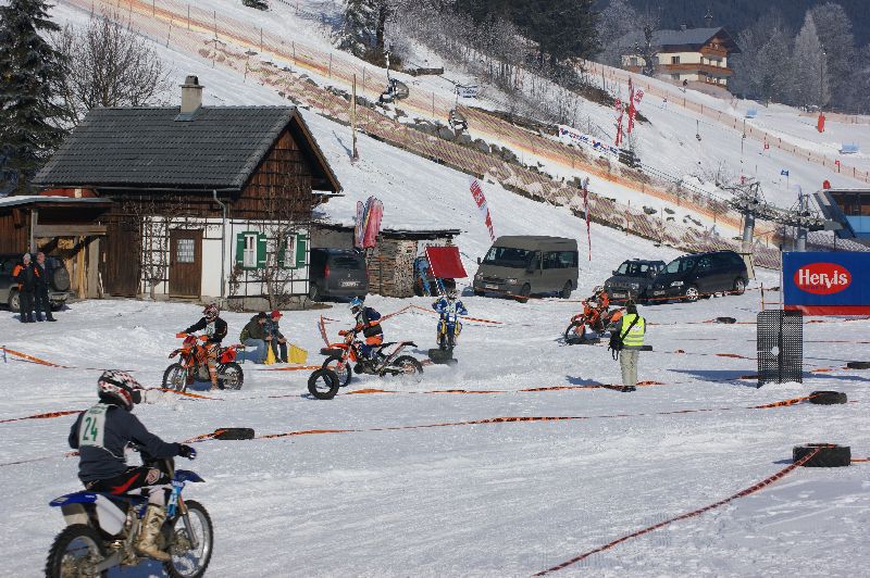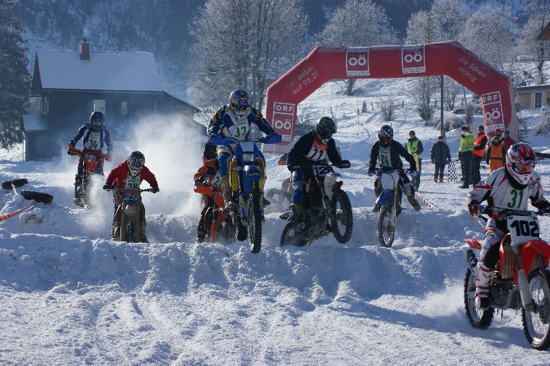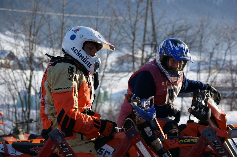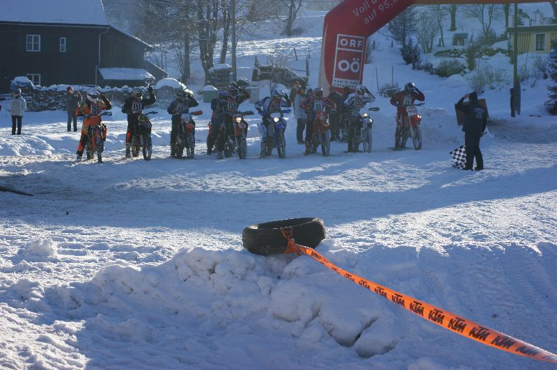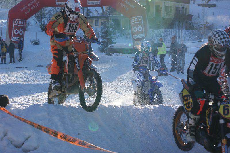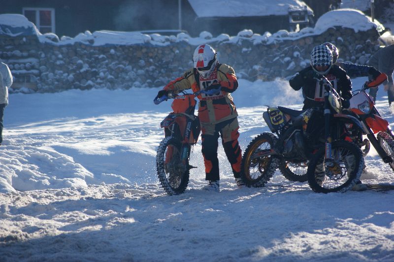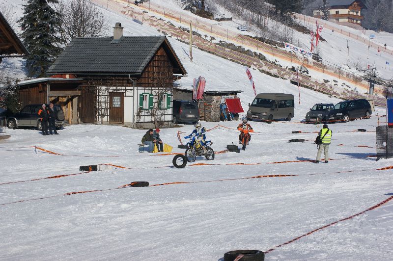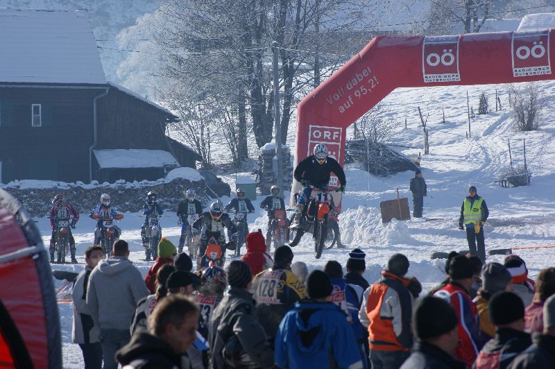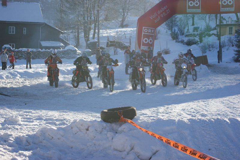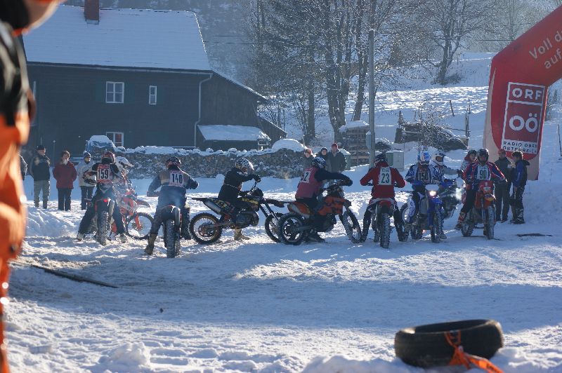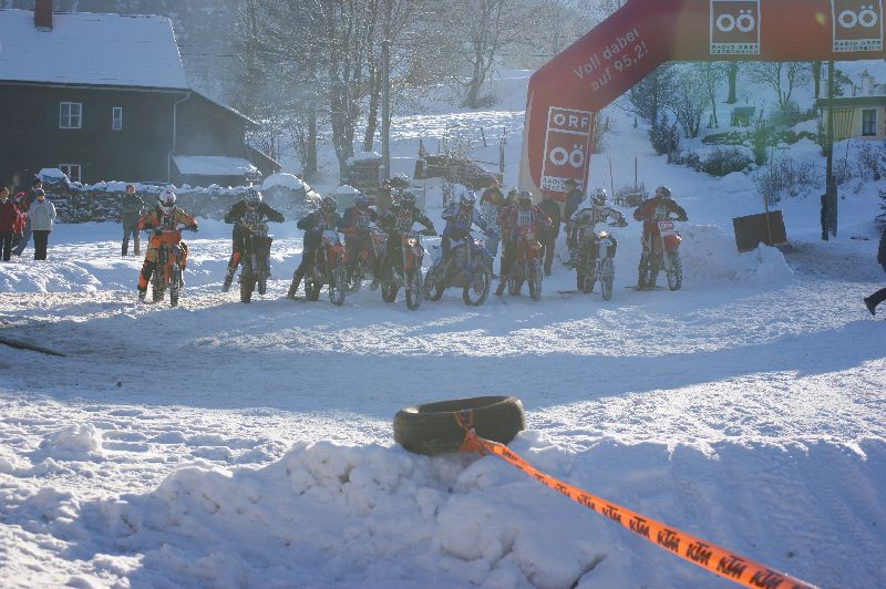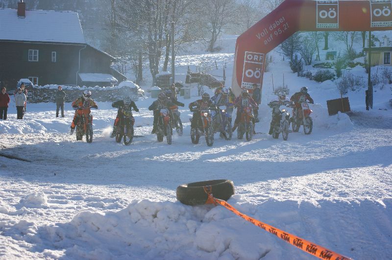 Eisig kalt war das Wintermotocross des Offroadteam Rabenkogel an diesem Wochenende. Trotz geringer Schneelage brachten die Veranstalter eine sehr schöne Strecke mit einem kleinen, aber sehr gefährlichen, Waschbrett und zwei großen Sprüngen zusammen. Die Läufe wurden nach dem K.O.-System gewertet, wobei immer 10 Fahrer an den Start gingen und die Besten 5 aufstiegen. Die letzten 5 hatten noch in einem Hoffnungslauf die Cance sich zu beweisen und doch noch eine Runde weiter zu kommen. Um auch mal etwas anderes im Winter zu machen als Skijöring zu fahren, ließen Peter Schmölzl, Korbi Meindl, Wasti Hirnböck und Anna Schmölzl ihre Skifahrer zu Hause und waren gespannt, wie sie sich alleine auf Schnee schlagen würden.