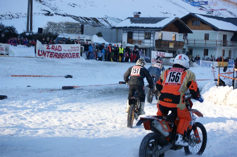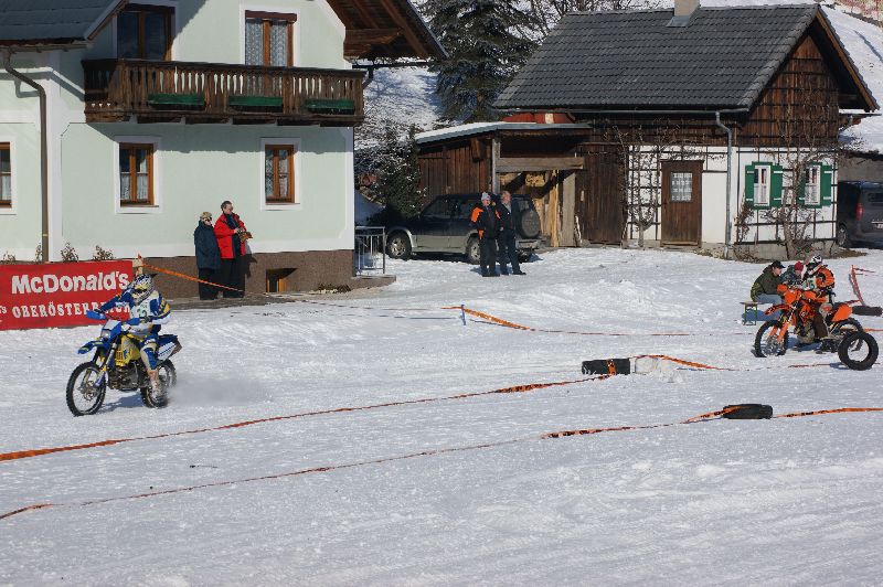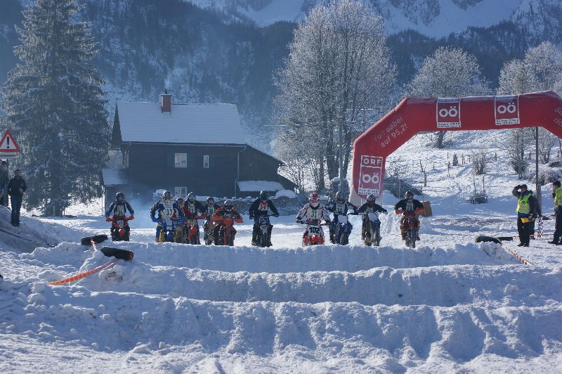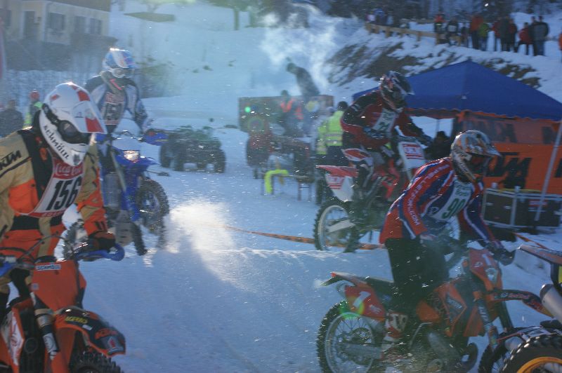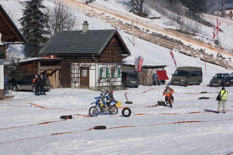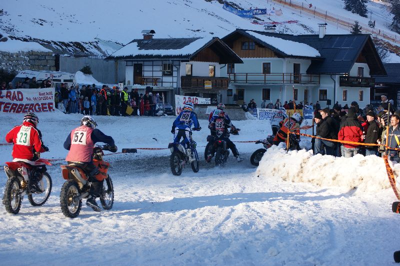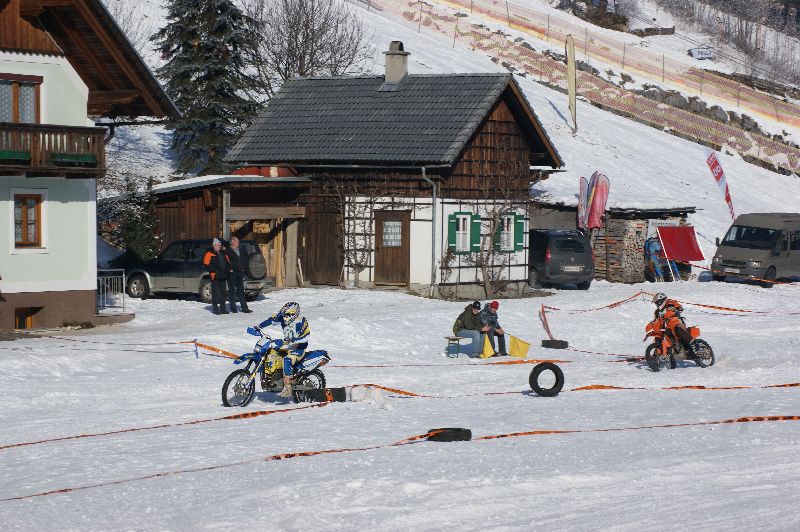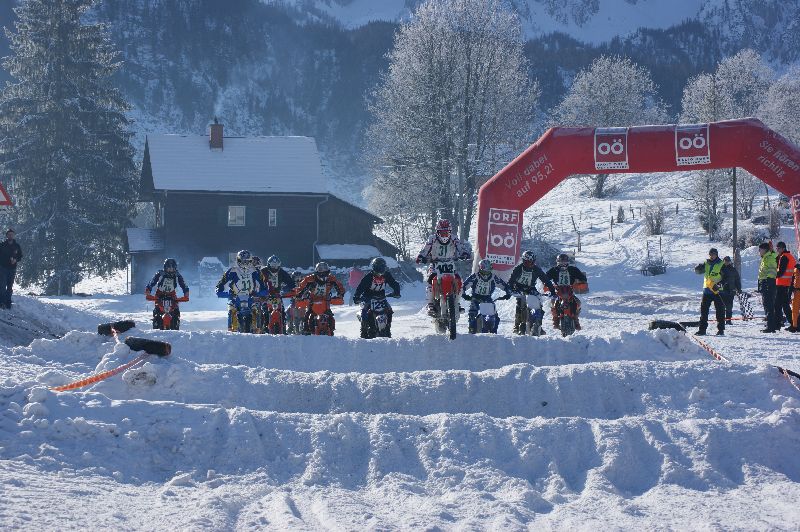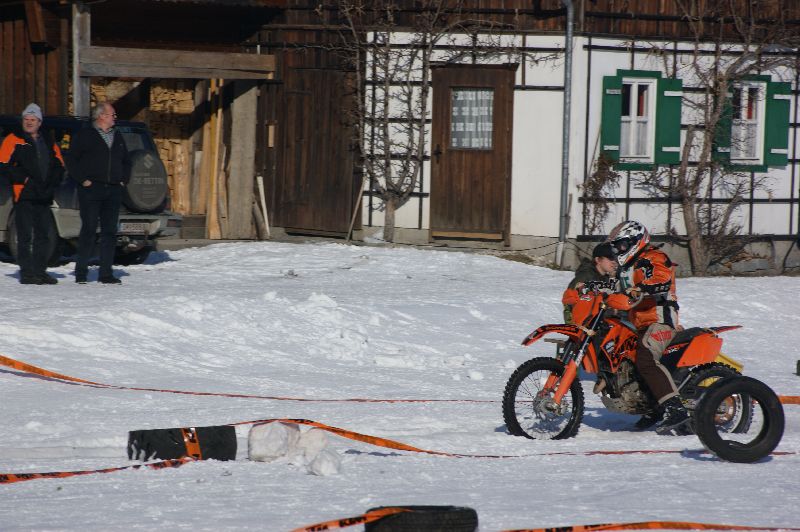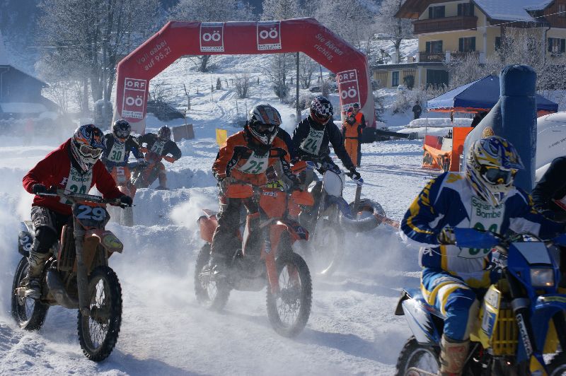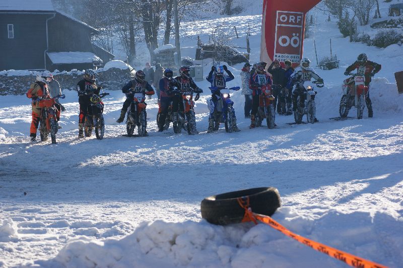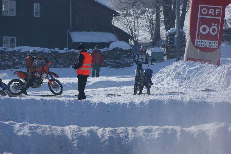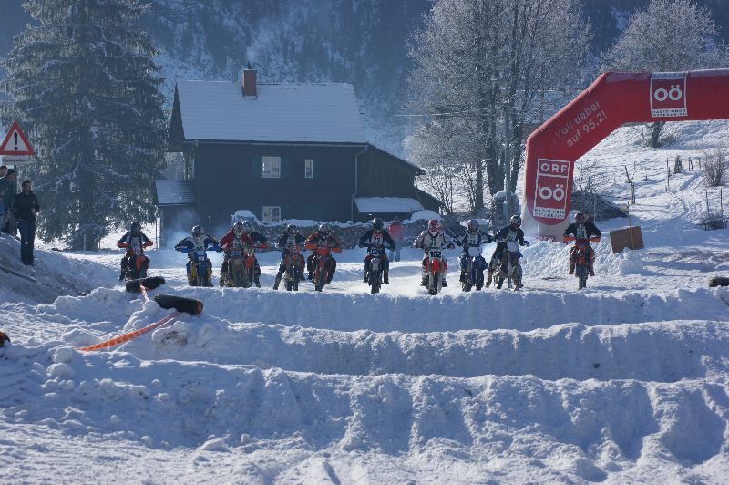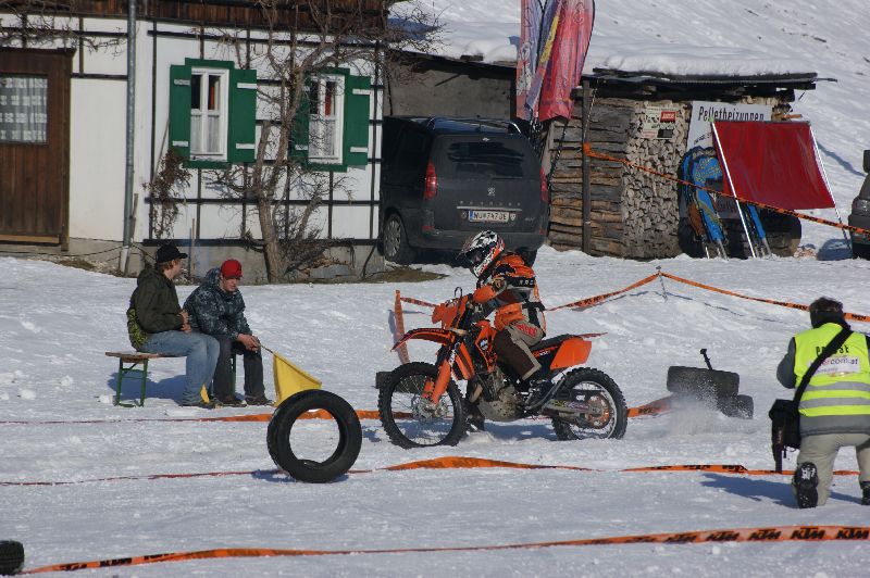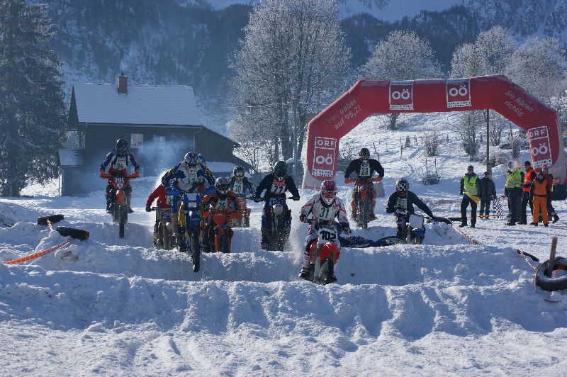 Eisig kalt war das Wintermotocross des Offroadteam Rabenkogel an diesem Wochenende. Trotz geringer Schneelage brachten die Veranstalter eine sehr schöne Strecke mit einem kleinen, aber sehr gefährlichen, Waschbrett und zwei großen Sprüngen zusammen. Die Läufe wurden nach dem K.O.-System gewertet, wobei immer 10 Fahrer an den Start gingen und die Besten 5 aufstiegen. Die letzten 5 hatten noch in einem Hoffnungslauf die Cance sich zu beweisen und doch noch eine Runde weiter zu kommen. Um auch mal etwas anderes im Winter zu machen als Skijöring zu fahren, ließen Peter Schmölzl, Korbi Meindl, Wasti Hirnböck und Anna Schmölzl ihre Skifahrer zu Hause und waren gespannt, wie sie sich alleine auf Schnee schlagen würden.