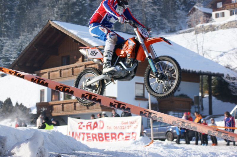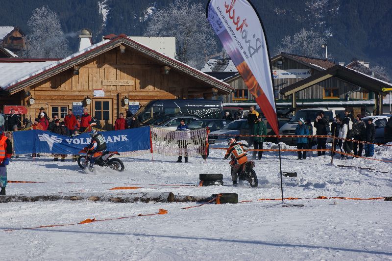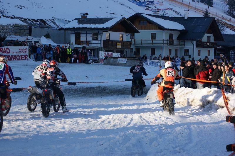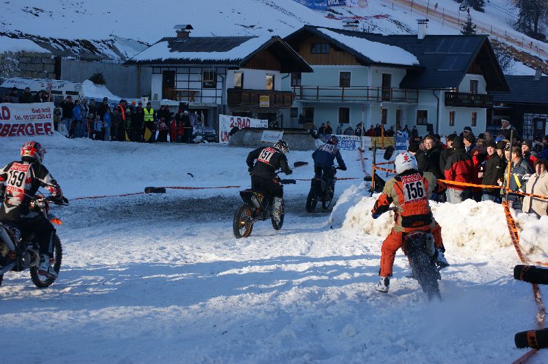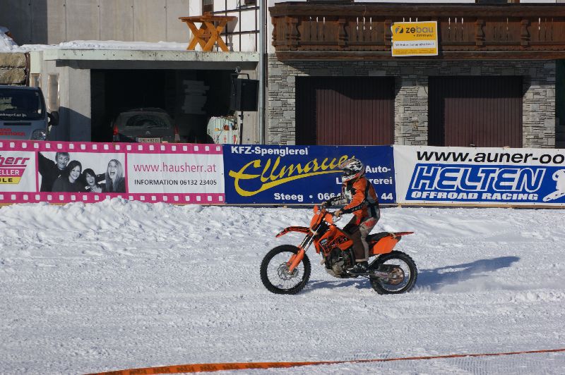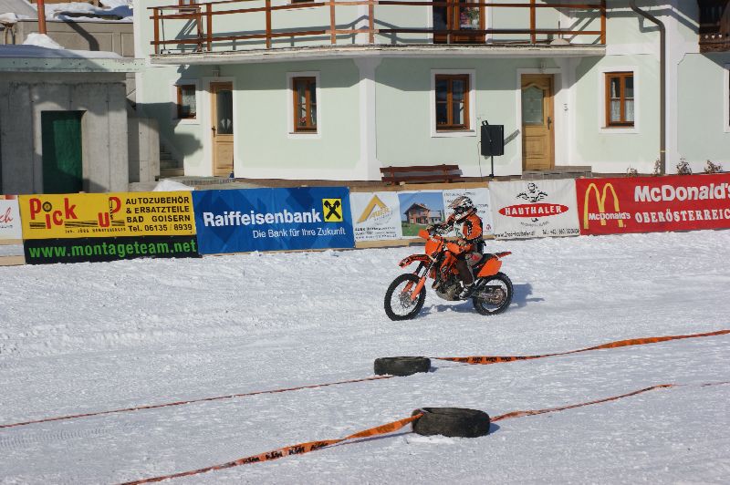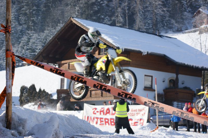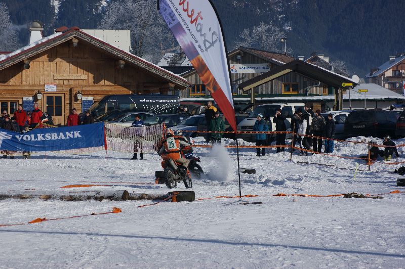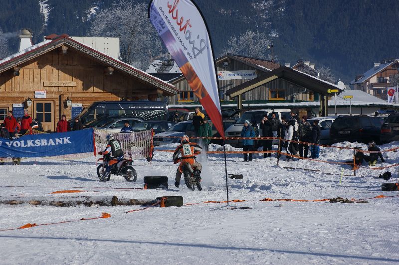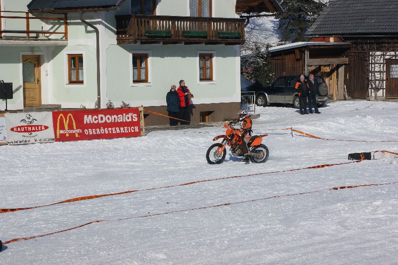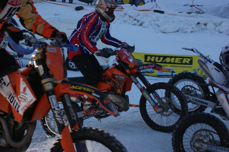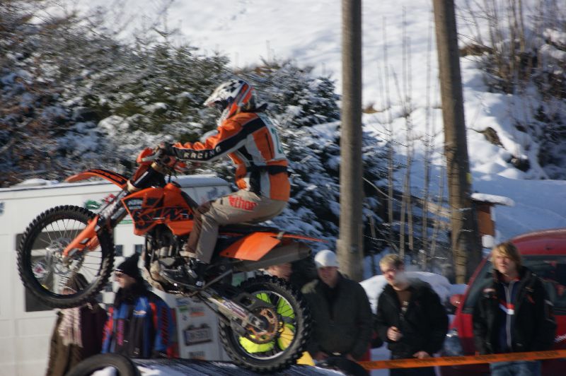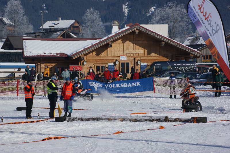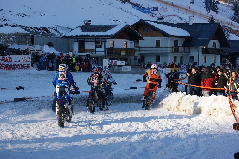 Eisig kalt war das Wintermotocross des Offroadteam Rabenkogel an diesem Wochenende. Trotz geringer Schneelage brachten die Veranstalter eine sehr schöne Strecke mit einem kleinen, aber sehr gefährlichen, Waschbrett und zwei großen Sprüngen zusammen. Die Läufe wurden nach dem K.O.-System gewertet, wobei immer 10 Fahrer an den Start gingen und die Besten 5 aufstiegen. Die letzten 5 hatten noch in einem Hoffnungslauf die Cance sich zu beweisen und doch noch eine Runde weiter zu kommen. Um auch mal etwas anderes im Winter zu machen als Skijöring zu fahren, ließen Peter Schmölzl, Korbi Meindl, Wasti Hirnböck und Anna Schmölzl ihre Skifahrer zu Hause und waren gespannt, wie sie sich alleine auf Schnee schlagen würden.