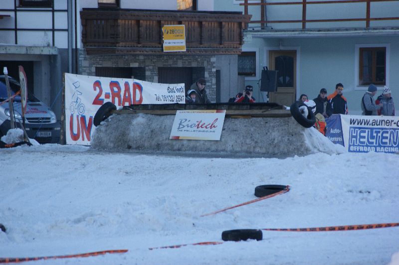 In der offenen Klasse fuhren Korbi, Wasti und Anna. Peter machte die Seniorenklasse unsicher. Mit wohlweislich sehr wenig Druck in den Reifen, gingen Anna, Korbi und Wasti an de Start und fuhren alle gerade noch unter die ersten 5. Peter hatte mit seiner sehr ruhigen Art einen entscheidenden Vorteil auf dem Eis und Schnee, denn er konnte einfach warten bis sich seine Gegner, indem sie stürzten, von selbst aus dem Rennen kickten. Seine Taktik, aber auch sein Fahrkönnen, brachten ihm im ersten Lauf Platz 2 ein!